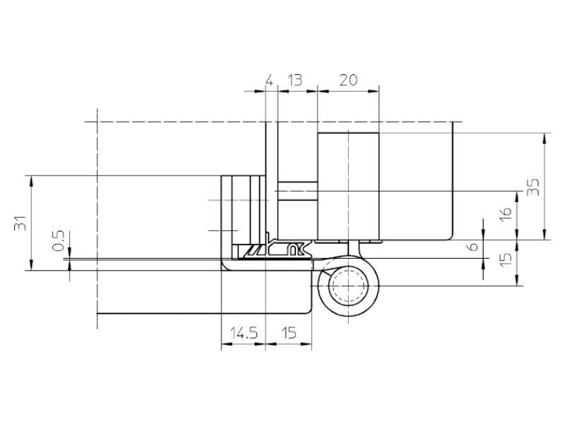 - 1 záves montovaný v strednej časti dverí - výškové nastavenie a stranové nastavenie