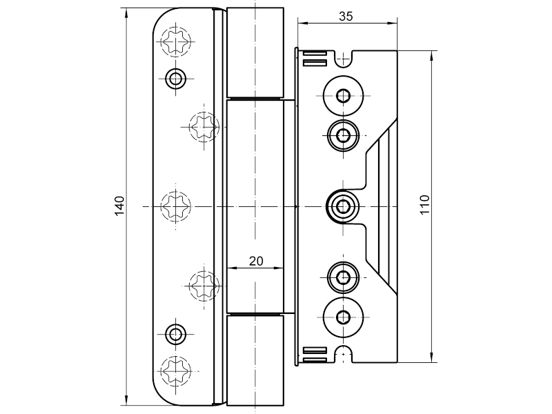 - Nastavenie v 3 rovinách: prítlak ± 3 mm, bočná vôľa ± 3 mm, výška ± 3 mm