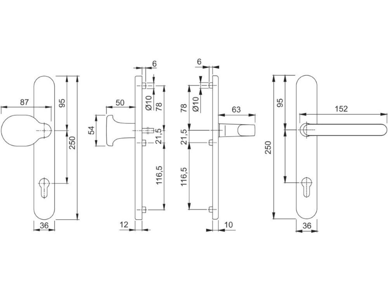 Dverová sada guľa-kľučka Hoppe Luxembourg na úzkom štítku je vyrobená z hliníka. Vnútorná strana je upevnená neviditeľne skrutkami M6, vonkajšia strana neviditeľne so spojovacími prvkami, dotiahnutá skrutkami M6. Sada je určená pre vchodové dvere s otvorom na cylindrickú vložku. Vzdialenosť medzi osou kľučky/gule a osou vložky je 92 mm. Kľučka je montovaná tak, že je otočná a má mechanizmus vratnej pružiny. Je prispôsobená pre hranol 8 mm a má stabilizačné čapy. Šírka štítku je 36 mm.